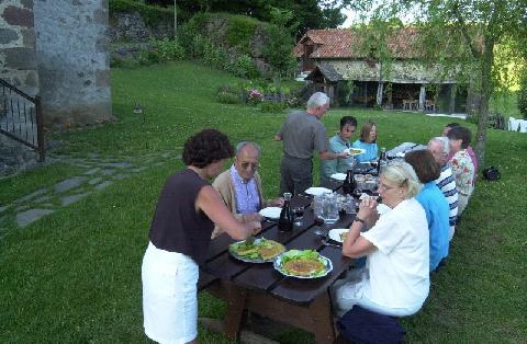 Die Mahlzeiten werden serviert im Esszimmer am großen Kamin, oder im Sommer im Garten.